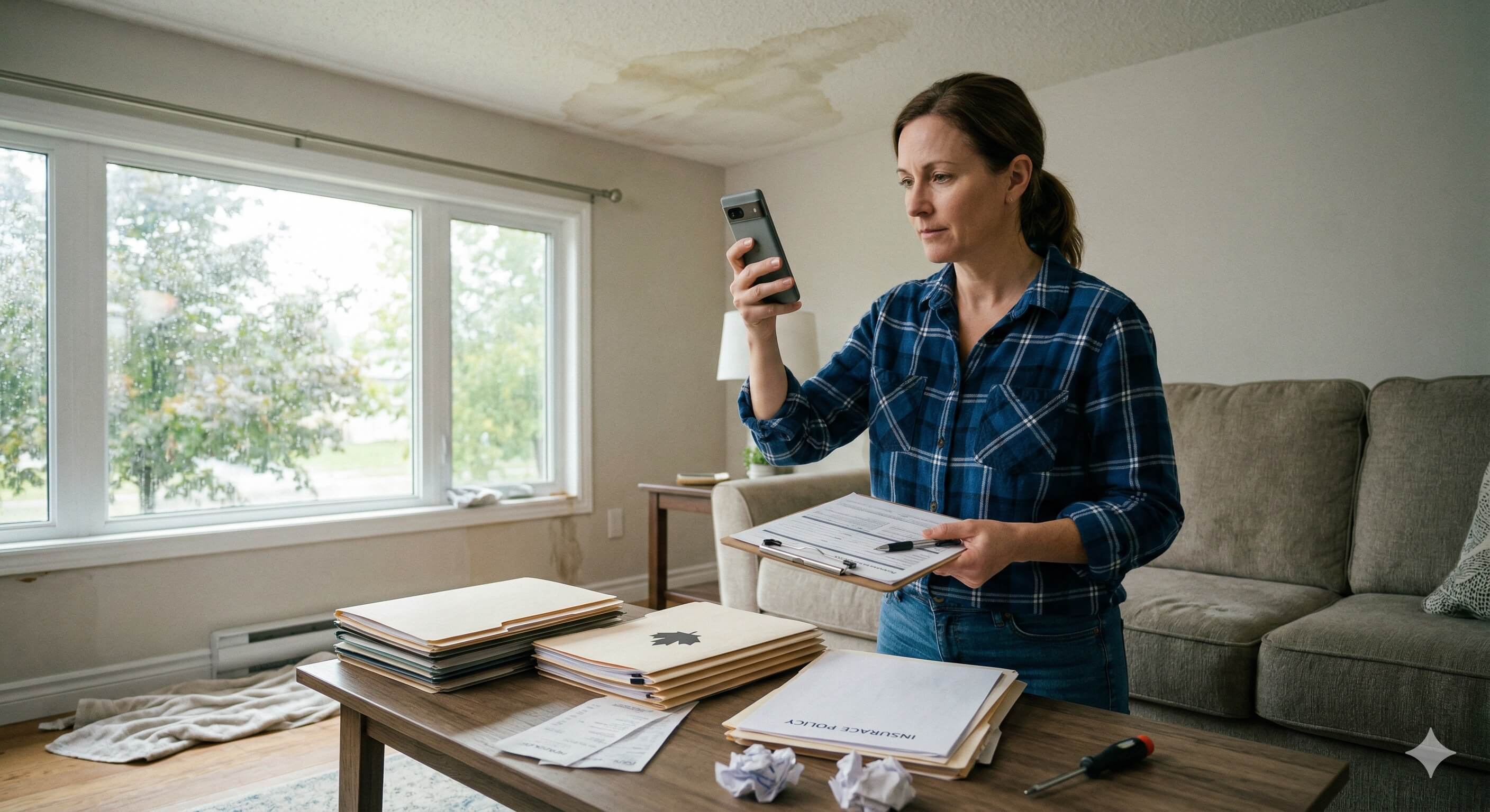 If the damage is extensive — a flooded basement, fire damage — resist the urge to start cleaning up before you've thoroughly documented the scene. Your insurer will rely on this evidence to assess your claim, and insufficient documentation is one of the top reasons claims get denied in Canada.